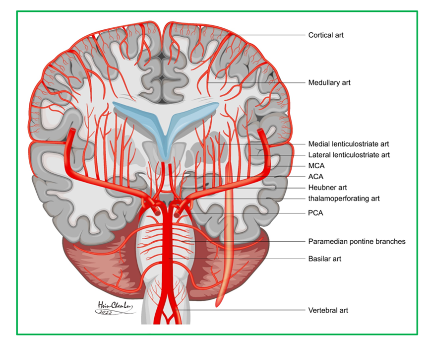 但多數學者認為會引起腦部疾病,如中風、失智的是小動脈,即腦實質或蜘蛛網膜小動脈(intraparenchymal and leptomeningeal small arteries 及 arteriole)才算。也就是穿透小動脈(penetrating artery 或稱perforating artery),包含: