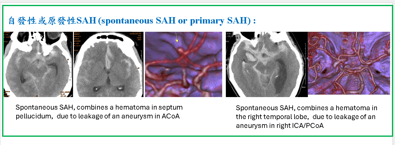 3. 自發性或原發性SAH (spontaneous SAH or primary SAH) :